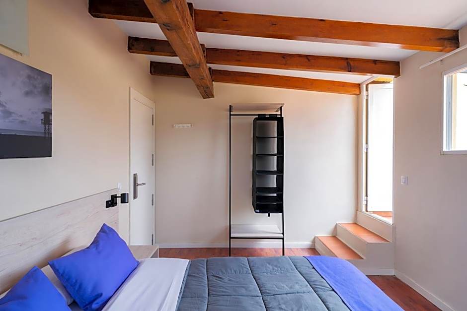 This bright, air-conditioned dorm room accommodates up to 4 people. It has 2 bunk beds and a shared bathroom.